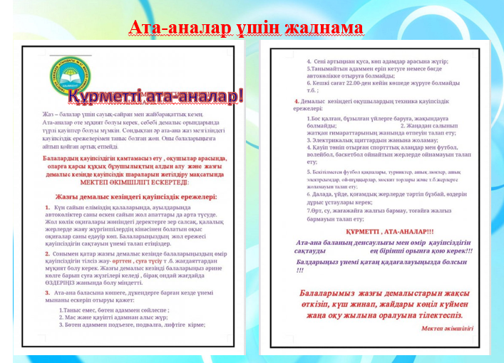 Оқушылардың демалыс кезіндегі өмірі және жол қауіпсіздігі