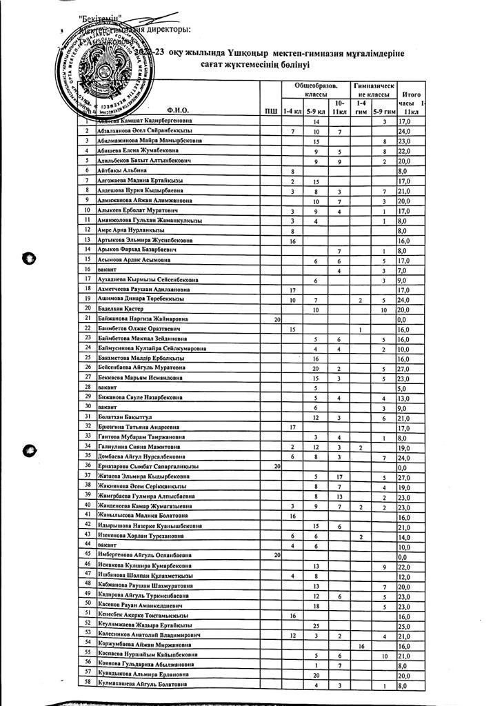 Сағат жүктемесінің бөлінуі » Үшқоныр орта мектеп гимназиясы