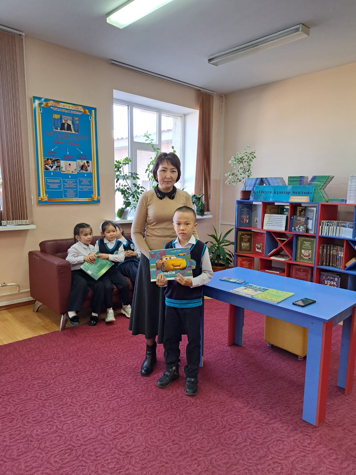 15 ноябрь 2023 0 1 2 3 4 5 'Кел,бір ертегі оқиық" "Үшқоңыр орта мектеп гимназиясы" кітапханасында "Оқуға құштар мектеп" жобасы бойынша 2"ә" сынып оқушыларымен сынып жетекшісі Э.Сайсанбекованың қатысуымен мектеп кітапханашылары Р.Жапарова,А.Кирпина 'Кел,бір ертегі оқиық" атты іс-шара өткізілді.