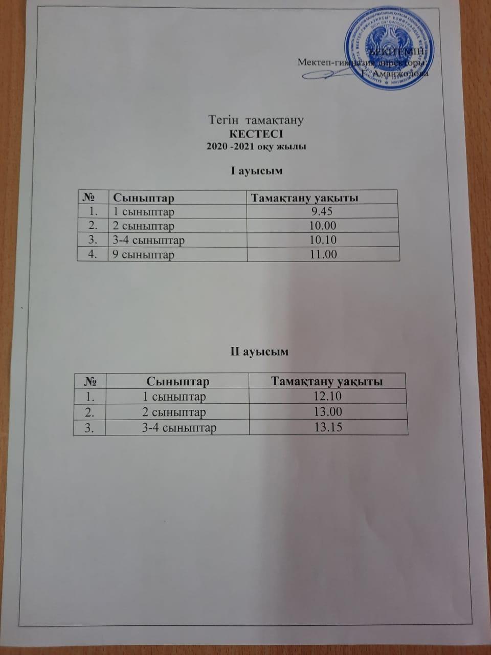 01 февраль 2021 0 1 2 3 4 5 2020 - 2021 оқу жылында асханада әкімшілік тарапынан атқарылатын кезекшілік кестесі мен тегін тамақтану кестесі